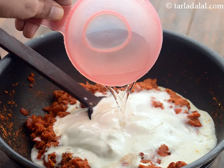 - Add the cream, ½ cup of water and salt, mix well and cook on a medium flame for 5 to 6 minutes, while stirring occasionally.