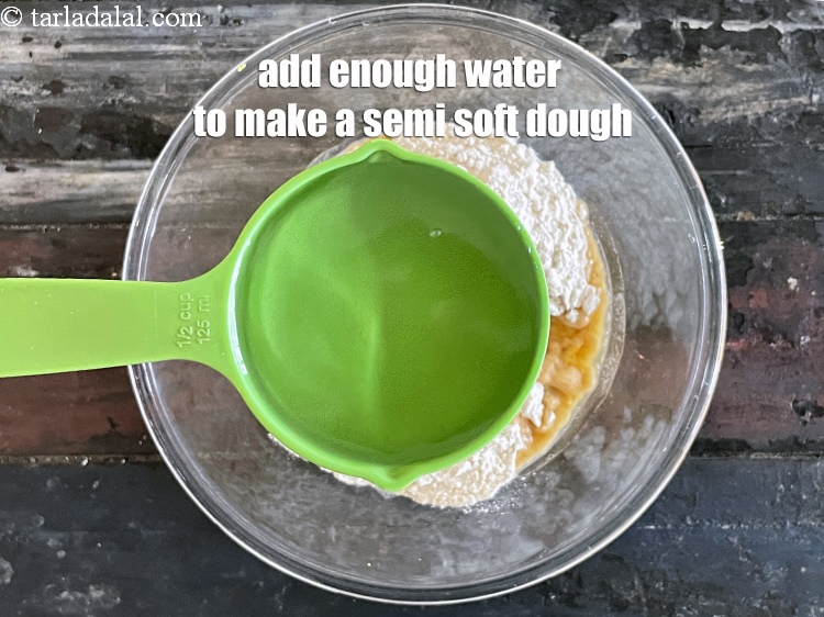 Combine all the ingredients in a deep bowl and knead into a semi-soft dough using enough water.
