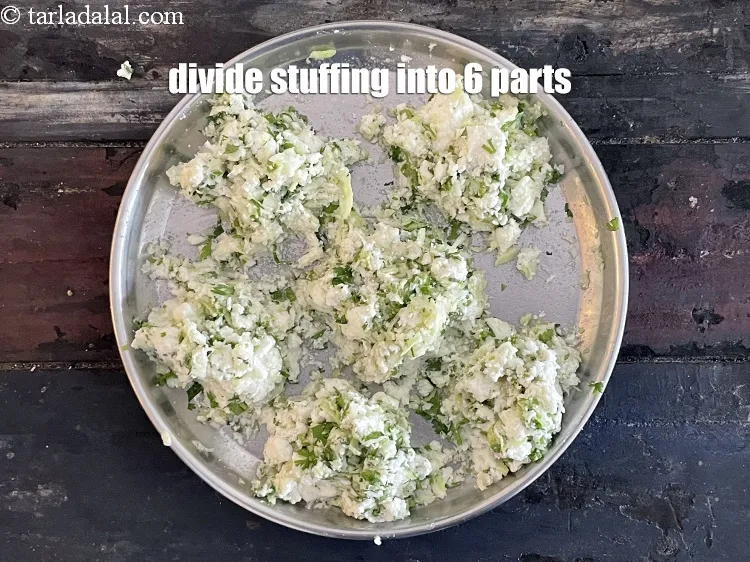 To make paneer paratha, divide the stuffing into 6 equal portions.