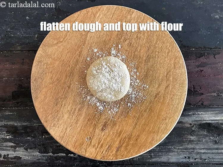 Roll again into a circle of 125 mm. (5”) diameter circle using a little whole wheat flour for rolling.