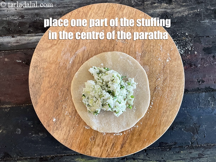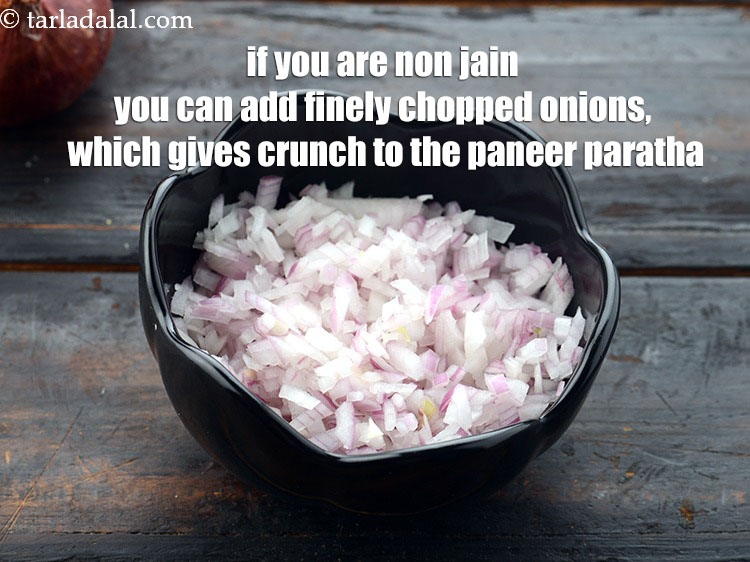 If you are non jain you can add finely chopped onions, which gives crunch to the paneer paratha.