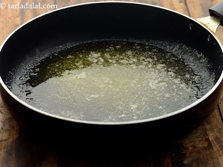 पार्सले राइस बनाने के लिए | झटपट पार्सले चावल | लहसुनी पार्सले चावल | parsley rice in hindi | एक चौड़े नॉन-स्टिक पैन में मक्खन गरम करें।