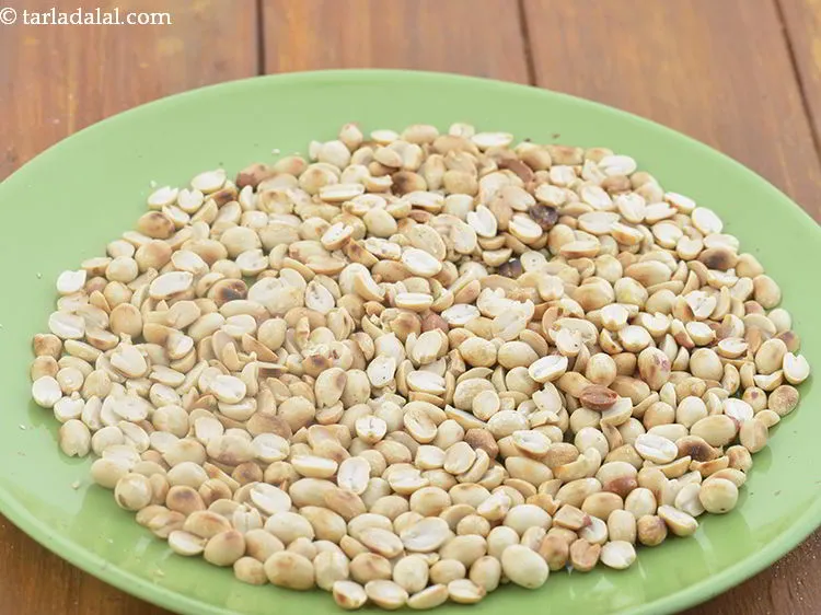 Transfer in a plate, cool completely so they turn crispy. De skin them by rubbing them between your palms.