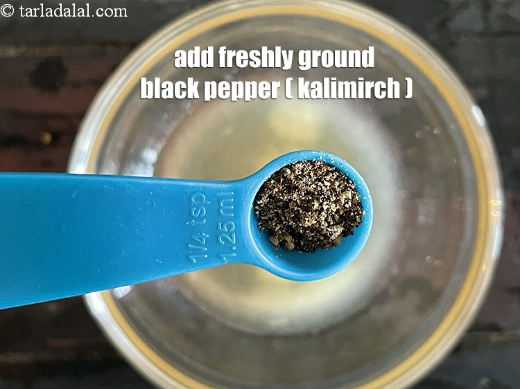 Add freshly ground black pepper ( kalimirch) to taste. We added 1/8th tsp pepper.
