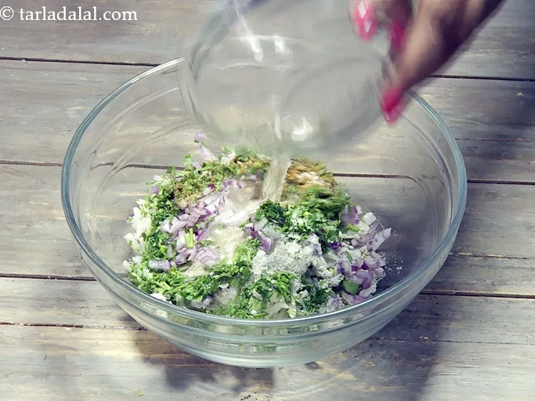 - To make potato bajra pancake, combine all the ingredients with approx. 5 tbsp of water in a deep bowl and mix well.