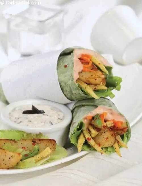 तीखा मेयोनीज़ इस रैप के स्वाद को बेहतर बनाता है, जो बेबी कॉर्न और लैट्यूस जैसे सामग्री के साथ और भी शानदार बन जाते हैं।