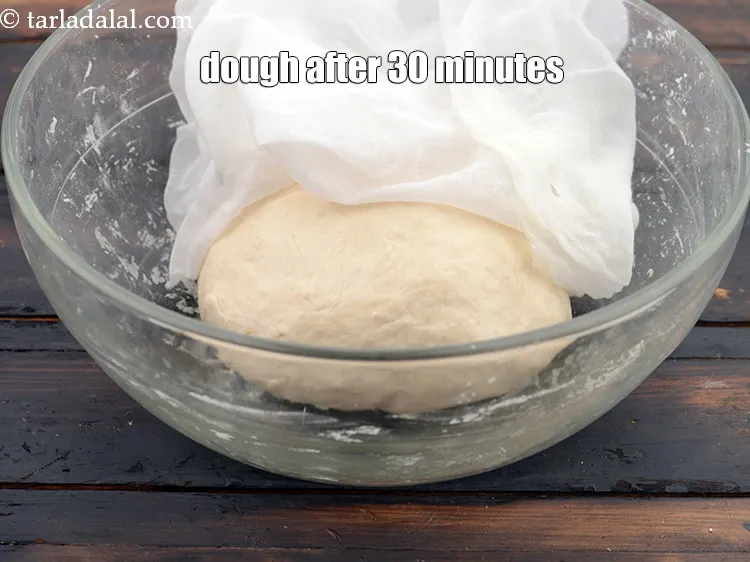 Cover the dough with a lid or wet muslin cloth for atleast 30 minutes.