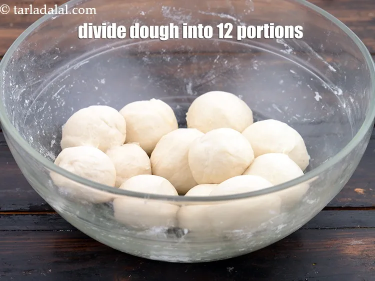- Combine the plain flour, yeast-sugar mixture, curds, melted ghee and salt in a deep bowl and knead into a soft dough, using approx. ¼ cup warm water.