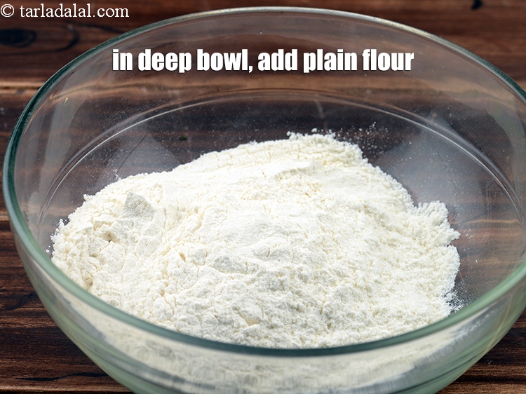 - एक गहरे बाउल में मैदा डालें और उसमें तेल डालें।