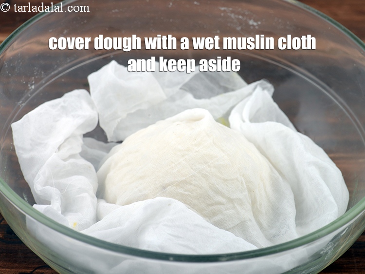 - आटे को गीले मलमल के कपड़े से ढककर 15 से 20 मिनट के लिए अलग रख दें।