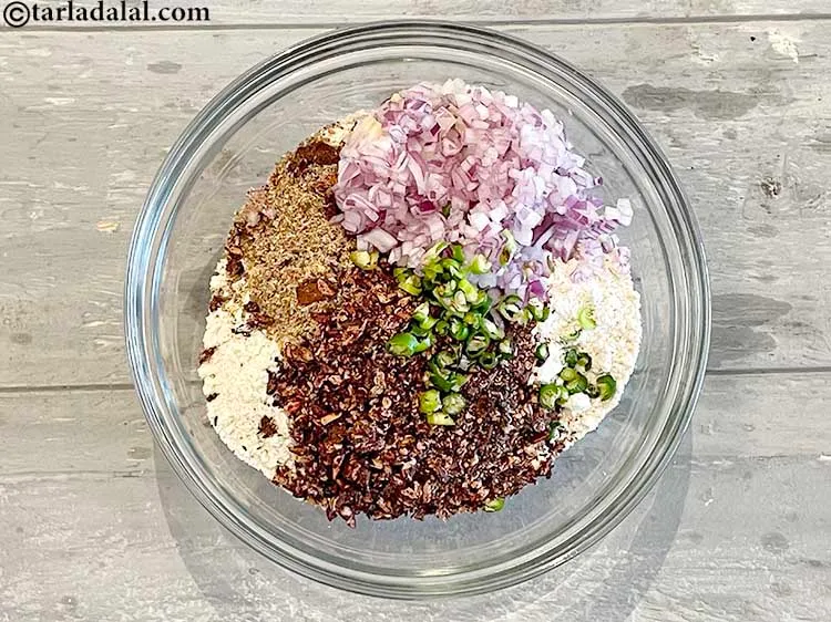 - To make pyaz ki roti, mix together all the ingredients and knead into a soft dough adding enough water.
