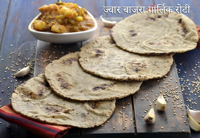 ज्वार बाजरा गार्लिक रोटी | हेल्दी बाजरा ज्वार लहसुन रोटी | वजन कम करने के लिए ज्वार बाजरा गार्लिक रोटी | Jowar Bajra Garlic Roti