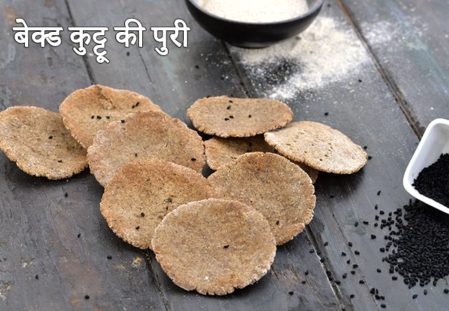 बेक्ड कुट्टू की पुरी रेसिपी | हेल्दी कुट्टू के आटे की पुरी | भारतीय कुट्टू के आटे की पुरी | कम नमक की रेसिपी |