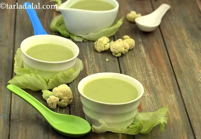 Try creamy broths and well blended soups. We have a few soups for you to try… Lettuce and Cauliflower Soup, Carrot Soup and Spinach Lettuce and Spring Onion Soup. You can experiment different soups with the vegetables of your choice as well.