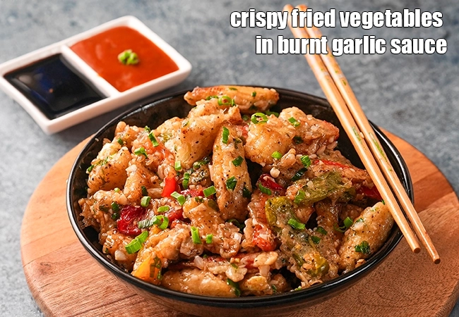 You can even deep-fry the vegetables and toss in burnt garlic to make a tongue-tickling delicacy crispy fried vegetables in burnt garlic sauce recipe | veg crispy in butter garlic sauce | Indo Chinese crispy veggies in butter garlic sauce that has an overwhelming flavour and aroma.