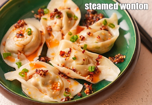 veg steamed wontons recipe | Indian style chilli oil wonton recipe | chilli garlic wontons | steamed vegetable wontons
