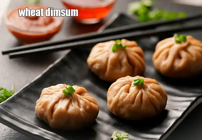 wheat dimsum, also known as momos , are a delicious and healthy steamed dumpling option. The key ingredient is whole wheat flour, which creates a nutritious and slightly chewy wrapper.