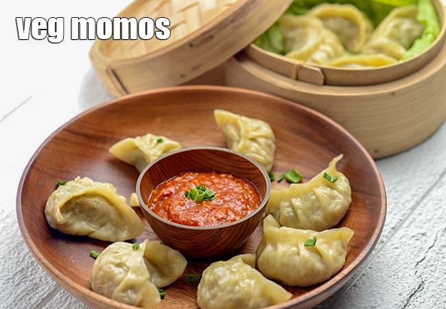 વેજિટેબલ મોમોઝ મસાલેદાર શાકભાજીથી ભરેલા સ્ટીમ્ડ ડમ્પલિંગ્સ છે. તેની રચના હલકી અને નરમ હોય છે.