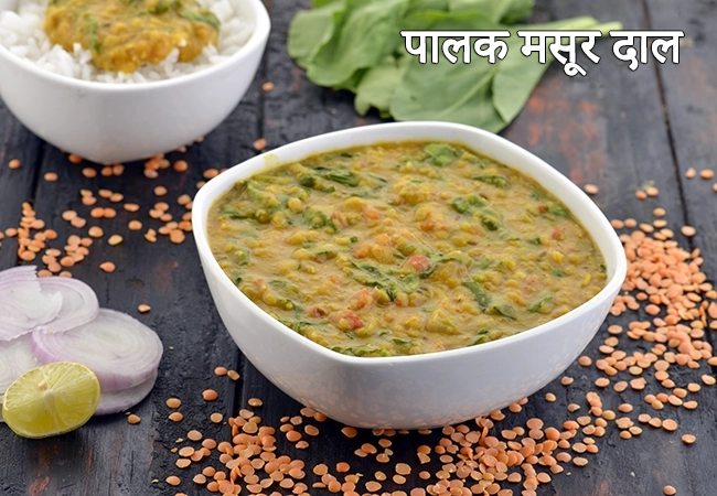 पालक के साथ मसूर दाल – फाइबर और पोषक तत्वों से भरपूर।