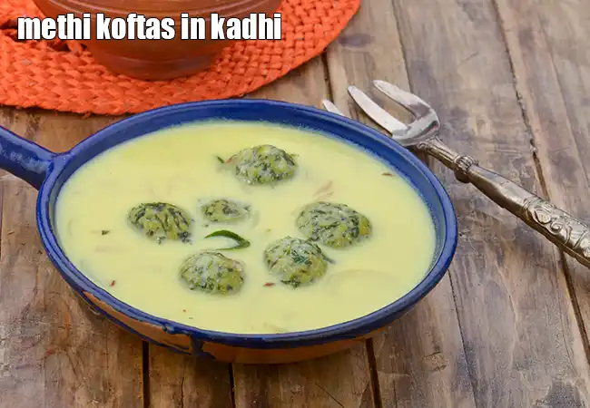मेथी कोफ्ता कढ़ी – भाप में पके कोफ्ते, हल्की दही की ग्रेवी में।