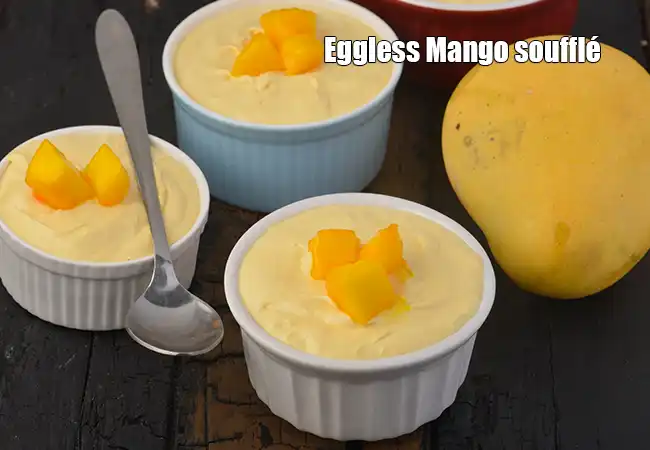 Eggless Mango soufflé | Indian style Mango soufflé | quick mango soufflé | Eggless Mango Soufflé is a light, … More..