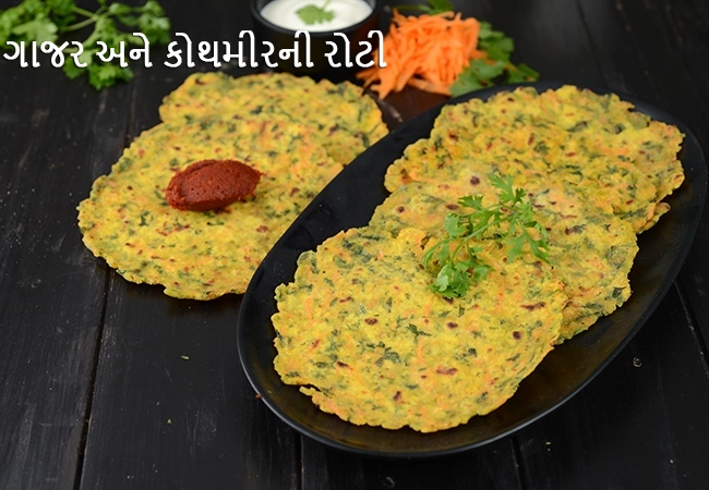 ગાજર કોથમીર રોટી | ગ્લુટેન મુક્ત ગાજર કોથમીર પરાઠા | ચોખાના લોટ સાથે ગાજર કોથમીર રોટી | carrot coriander roti recipe