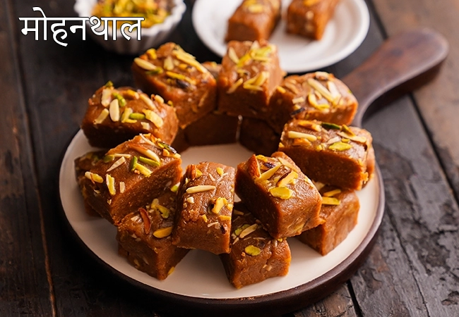 मोहनथाल रेसिपी | हलवाई स्टाइल मोहनथाल मिठाई | खोया मोहनथाल | मोहनथाल रेसिपी हिंदी में | mohanthal recipe