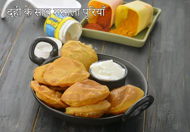 मसाला पूरी रेसिपी | मसाला पूरी के साथ दही | नाश्ते के लिए मसाला पूरी | ब्रेकफास्ट रेसिपी | masala puris with curds