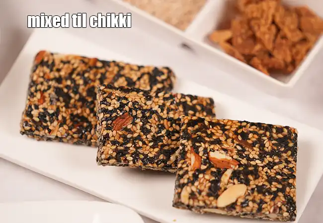મિક્સ્ડ તલ ચીકી ભુનેલા તલ, ગોળ અને મિશ્ર સુકા મેવાના ઉપયોગથી બનેલી પરંપરાગત ભારતીય મીઠાઈ છે. તેમાં કરકરી બનાવટ અને કુદરતી મીઠાશનું સુંદર સંતુલન જોવા મળે છે.