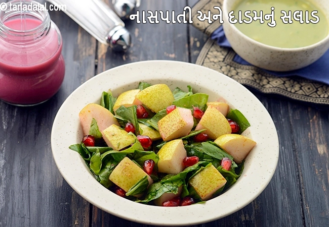 નાસપાતી અને દાડમનું સલાડ રેસીપી | દાડમનું સલાડ | સ્વસ્થ પાલક અને દાડમનું સલાડ | ભારતીય પાલક સલાડ | pomegranate and spinach salad recipe in Gujarati | with 23 amazing images.