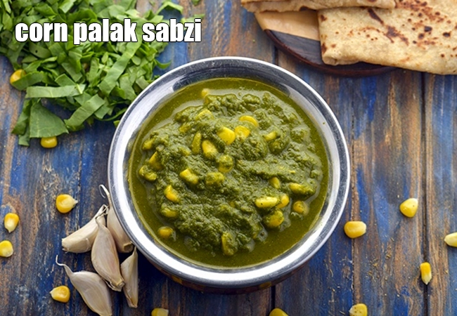 corn palak sabzi recipe | sweet corn spinach sabzi | healthy corn spinach vegetable | Healthy Corn Palak Sabzi has palak and sweet corn. Palak is one of the fat-free ways of adding antioxidants antioxidants like vitamin C, vitamin A and folate. These together will work to keep your heart free of diseases.
