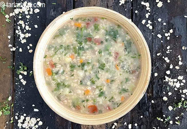 ओट्स एण्ड वेजिटेबल ब्रोथ रेसिपी | वेजिटेबल ओट्स सूप | ओट्स सूप | ओट्स के साथ वेजिटेबल का सूप | oats and vegetable broth in Hindi. वजन पर नजर रखने वाले और हृदय रोगियों से लेकर मधुमेह रोगियों तक सभी स्वस्थ व्यक्ति इस स्वस्थ ओट्स सूप का सेवन कर सकते हैं और इसके फाइबर की मात्रा का लाभ उठा सकते हैं। यह न्यूनतम तेल का उपयोग करके बनाया जाता है। इसमें कम ग्लाइसेमिक इंडेक्स वेजी की अच्छाई है। उच्च रक्तचाप वाले लोग नमक की सीमित मात्रा का उपयोग कर सकते हैं और इसे दोबारा इस्तेमाल कर सकते हैं। और यह दिल को छूनेवाला और तृप्ति और ज़्यादा खाने से बचने के लिए किसी भी भोजन के लिए एक आदर्श शुरुआत है।