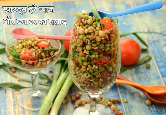 स्प्राउट्स हरे प्याज और टमाटर का सलाद की रेसिपी | स्प्राउट्स सलाद | हेल्दी सलाद | वजन घटाने के लिए सलाद | sprouts spring onion and tomato salad in hindi | तेज़, आसान और स्वादिष्ट भी - क्या संयोजन है! सबसे अच्छी बात यह है कि इस भारतीय मिश्रित अंकुरित टमाटर का सलाद में उतनी ही पोषण संबंधी अपील भी है, जो इसे गर्भधारण से पहले और गर्भावस्था की पहली तिमाही में अवश्य ही खाना चाहिए।