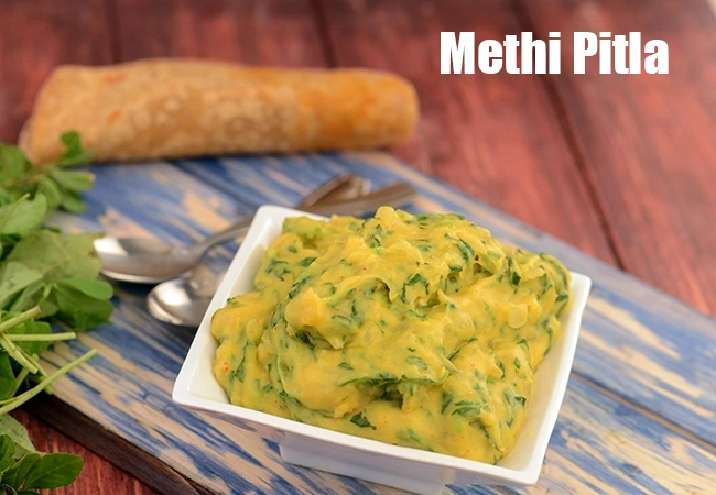 healthy methi pitla recipe | methiche pithle | Maharashtrian methi pitla | One serving of healthy methi pitla has 8.9 grams of protein ( 16% RDA). See calories of healthy methi pitla.
