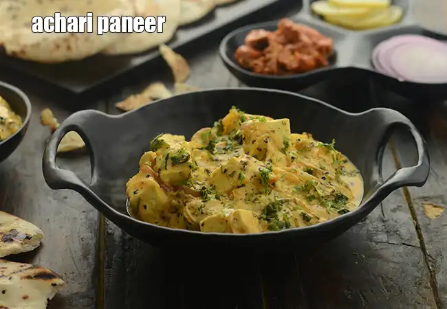 achari paneer recipe | Punjabi achari paneer | restaurant style achari paneer | healthy achari paneer | One serving of achari paneer has 13.4 grams of protein ( 24% RDA). See calories of achari paneer.