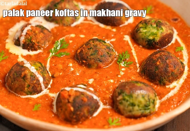 palak paneer koftas in makhani gravy recipe | healthy spinach paneer kofta in makhani gravy | palak paneer kofta curry