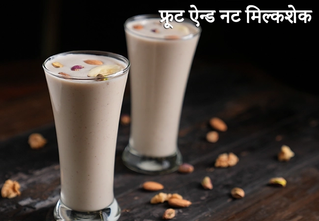 फ्रूट ऐन्ड नट मिल्कशेक रेसिपी | स्वस्थ भारतीय फल और अखरोट मिल्कशेक | वजन घटाने के लिए फल और अखरोट मिल्कशेक | फ्रूट ऐन्ड नट मिल्कशेक रेसिपी हिंदी में | fruit and nut milkshake recipe in hindi |