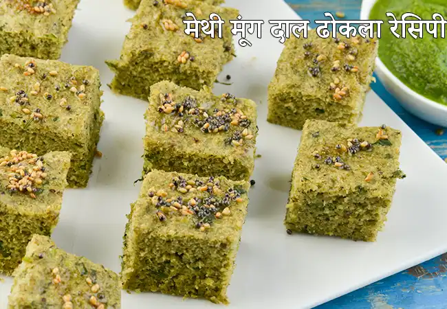 मेथी मूंग दाल ढोकला रेसिपी | मूंग की दाल का ढोकला | हेल्दी मूंग दाल ढोकला | स्वस्थ नाश्ता | methi moong dal dhokla in hindi | 3 मेथी मूंग दाल ढोकला के टुकड़े 10.5 ग्राम प्रोटीन देते हैं (RDA का 18%)