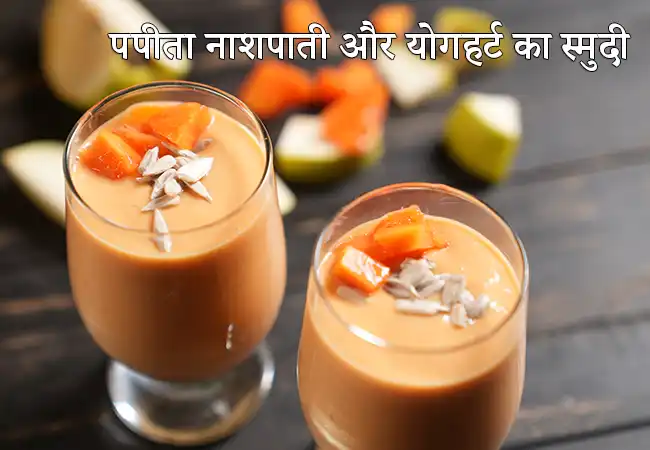 पपीता नाशपाती दही स्मूदी रेसिपी | ग्रीक योगहर्ट के साथ पपीता नारियल स्मूदी | फोलिक एसिड, विटामिन बी1,2 से भरपूर भारतीय बिना चीनी वाली स्मूदी | पपीता नाशपाती दही स्मूदी रेसिपी हिंदी में | papaya pear yoghurt smoothie recipe in hindi |