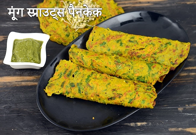 मूंग स्प्राउट्स पैनकेक रेसिपी | स्प्राउट्स चीला | बेसन पैनकेक विद स्प्राउट्स | हेल्दी स्नैक्स | sprouts pancakes in hindi|