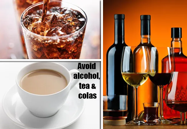 વાયુયુક્ત પીણાં અને આલ્કોહોલ ટાળો: Avoid Aerated drinks and alcohol: