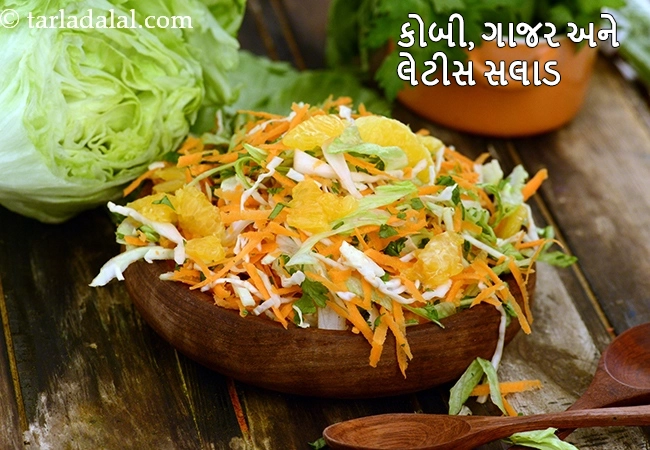 કોબી, ગાજર અને લેટીસ સલાડ રેસીપી | કોબી, ગાજર અને લેટીસ સલાડ | હેલ્ધી કોબી, ગાજર અને લેટીસ સલાડ | cabbage carrot and lettuce salad recipe in gujarati |