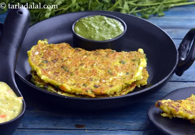 Cooked rice pancakes recipe | leftover rice pancakes | Indian rice pancake with vegetables is a simple fare which kids and adults both will take pleasure in enjoying as a breakfast. The leftover rice pancakes with colourful veggies and a host of flavorful masalas is not only easy to make but also has melt-in-the-mouth delicate flavors. Serve it with coriander green garlic chutney for a filling breakfast that will keep you going for hours.