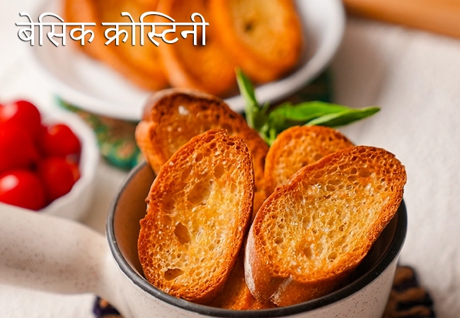 बेसिक क्रोस्टिनी रेसिपी कैसे बनाएं | 10 मिनट में भारतीय स्टाइल में घर पर बनी क्रोस्टिनी | फ्रेंच बगेट क्रोस्टिनी | बेसिक क्रोस्टिनी रेसिपी कैसे बनाएं हिंदी में | how to make a basic crostini recipe in Hindi