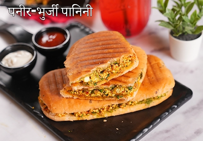 पनीर-भुर्जी पानिनी रेसिपी | भारतीय स्टाइल पनीर पानिनी | पनीर पानिनी सैंडविच | paneer bhurji panini recipe in Hindi