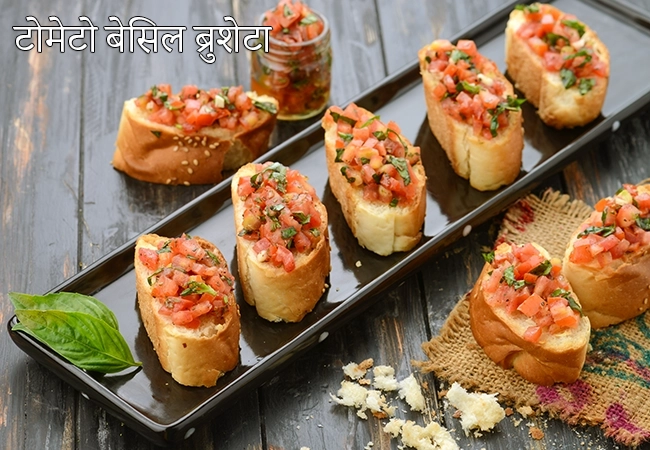 टोमेटो बेसिल ब्रुशेटा रेसिपी | इटालियन ब्रुशेटा | टमाटर बेसिल ब्रुशेटा | टमाटर और बेसिल का ब्रुशेटा | tomato and basil bruschetta in hindi. इटालियन ब्रुशेटा एक क्लासिक स्टार्टर है जिसका आनंद कई लोग उठाते हैं। टमाटर और बेसिल के साथ ब्रूशेटा बनाना सीखें। भारतीय शैली टोमेटो बेसिल ब्रुशेटा बनाने की सामग्री भारत में आसानी से उपलब्ध है और यह एक आसान नुस्खा है।