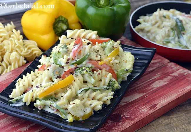 व्हाइट सॉस पास्ता | व्हाइट सॉस में पास्ता | - White Sauce Pasta, Indian Style White Sauce Pasta