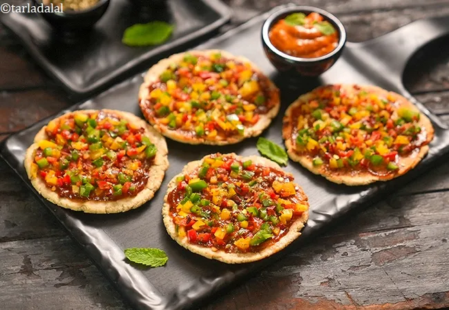 mini oats bhakri pizza recipe | healthy oats pizza | oats flour pizza no eggs | Indian style bhakri pizza |