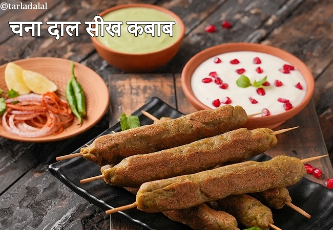 चना दाल सीख कबाब रेसिपी | जैन कबाब | हेल्दी तवा चना दाल सीख कबाब | चना दाल, कच्चे केले और कटी हुई गोभी के आदर्श अनुपात से बने परफेक्ट चना दाल सीक कबाब, पुदीना, हरी मिर्च और मसाले के पाउडर से बेहतरीन स्वाद के साथ, स्टार्टर के तौर पर परोसे जा सकते हैं।