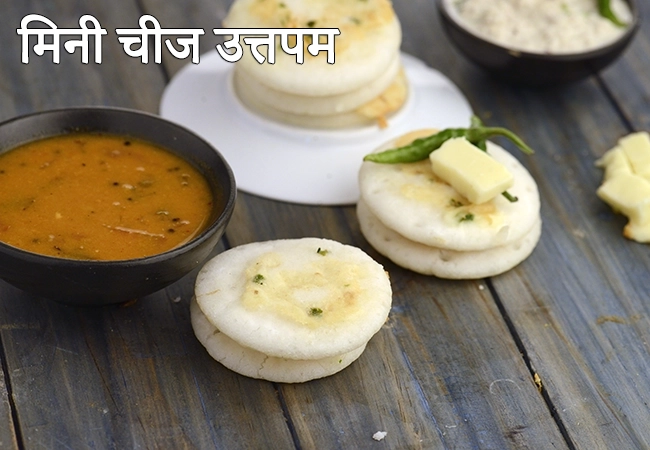 मिनी चीज़ उत्तपम - चीज़ और हरी मिर्च की एक साधारण टॉपिंग उत्तपम को एक स्वादिष्ट व्यंजन में बदल देती है!
